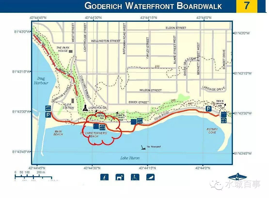 GoderichBeach-St. Christopher's Beach CoveRd, Goderich, ON GPSlocation: 43°44'23.7"N 81°43'36.1"W 如果可以占到BBQ大棚,我们将在棚里组织活动。否则组委会将在红云位置摆上桌子和太阳棚来举办活动。