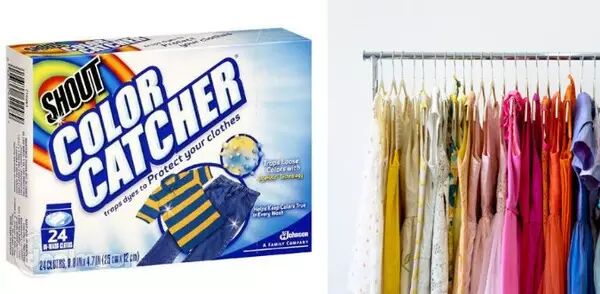 建议:Shout color catcher,洗衣服的时候丢进洗衣机,它可以吸附容在水里的染料,再也不用担心白衣服变成各种奇怪的颜色。