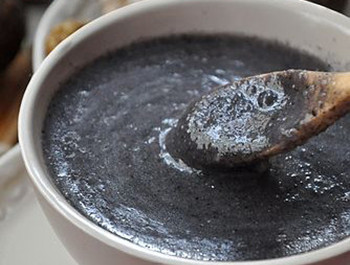 原料:地瓜70克、山药70克、米饭70克、黑芝麻粉2茶匙、白糖5克