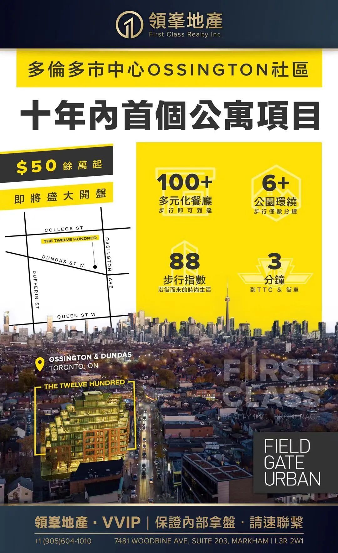 The Twelve Hundred Condos位于多伦多市中心OSSINGTON社区,也是此社区十年内首个公寓项目,8层中共有115个单位,50万起。